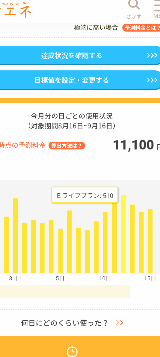 11日にエコキュートの交換があり、おそらくですが、お湯を抜いたり貯めたり、試運転をしたり、1日がかりでやっていたので、その影響でそのあたりの電気代が一気にあがっています。