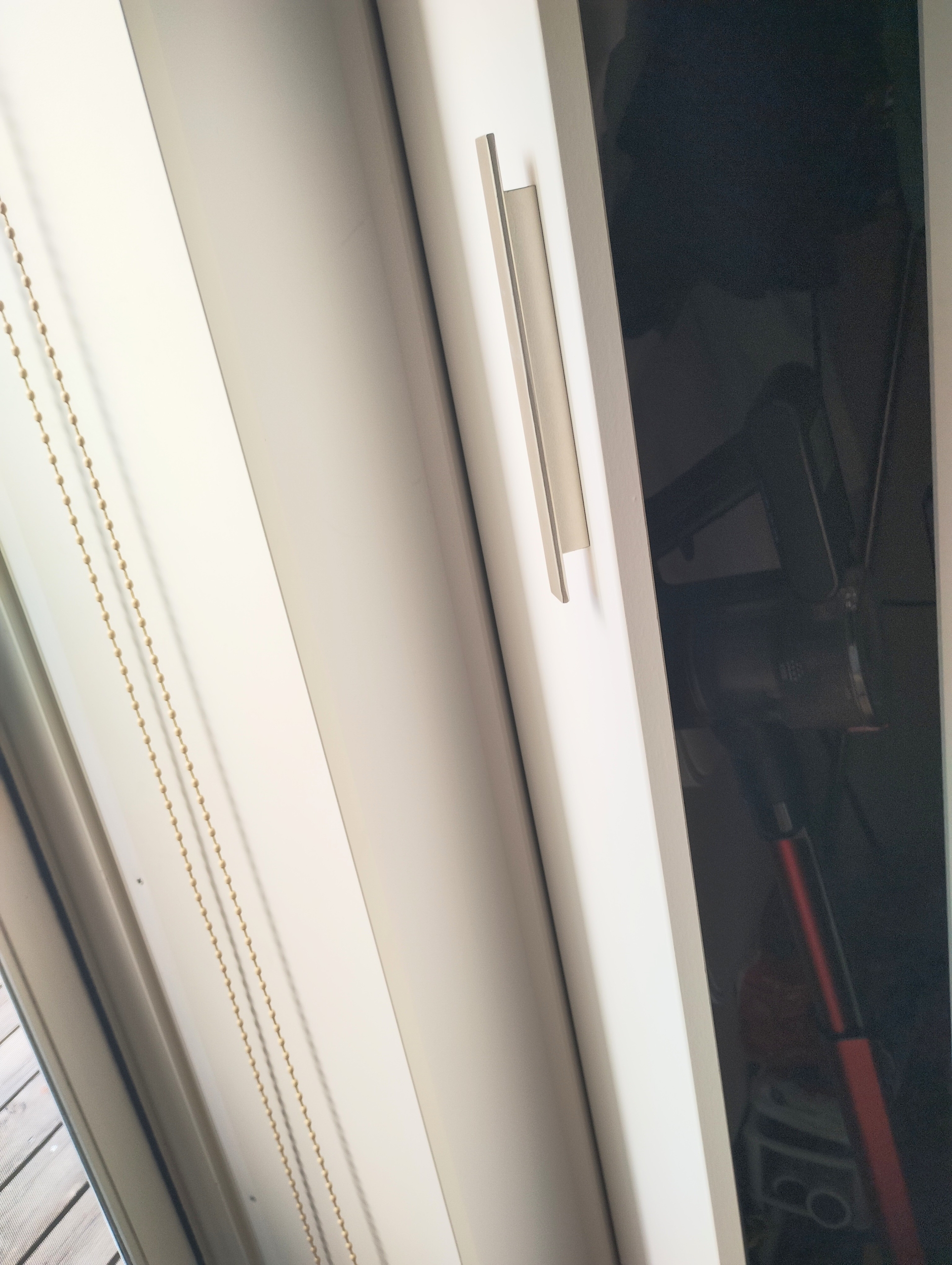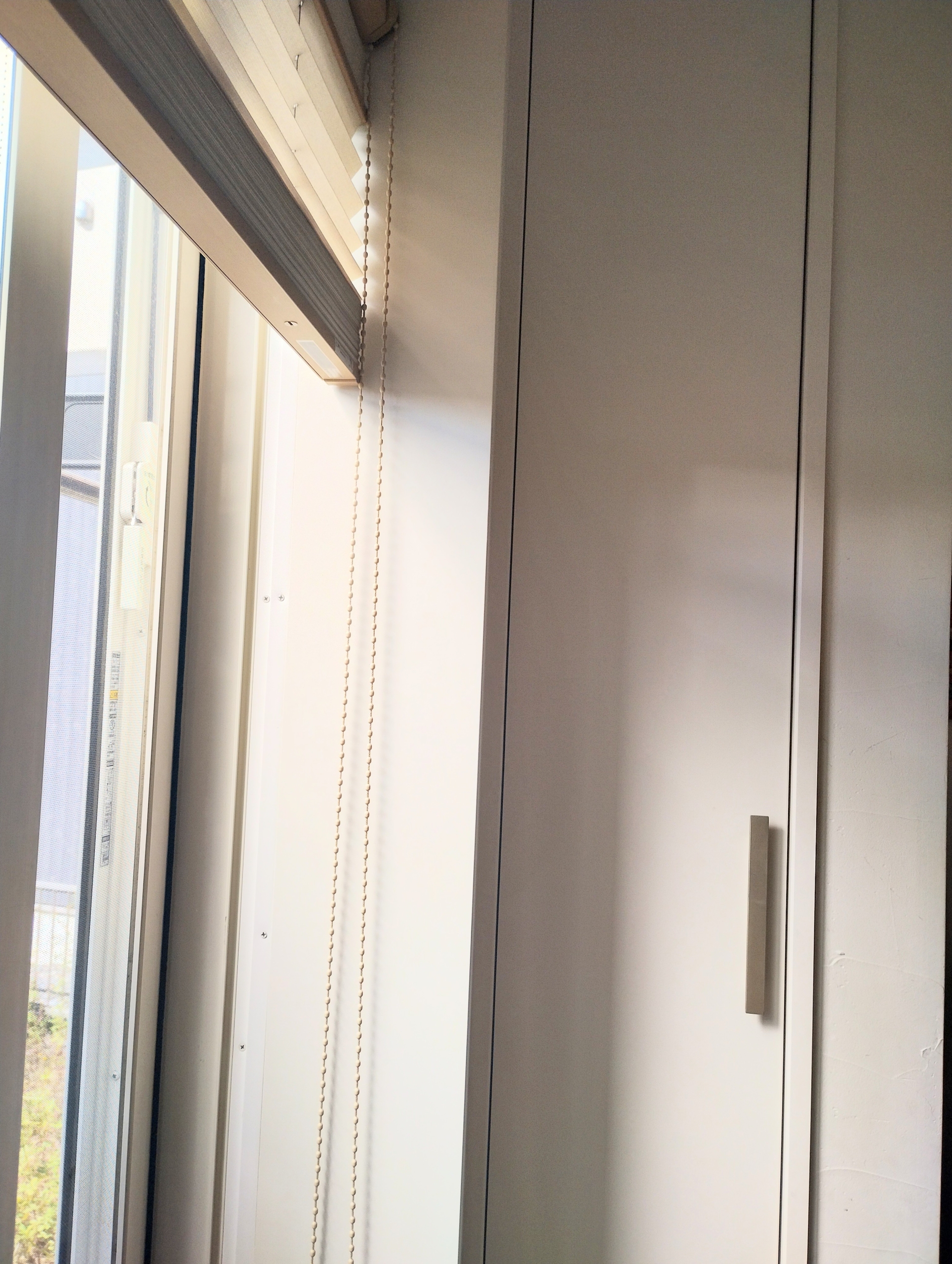 我が家では、この窓に面したウッドデッキに洗濯物を干すのですが、このクローゼットには洗濯物を干す時に使う、洗濯バサミやハンガーの他に掃除機も収納してあります。