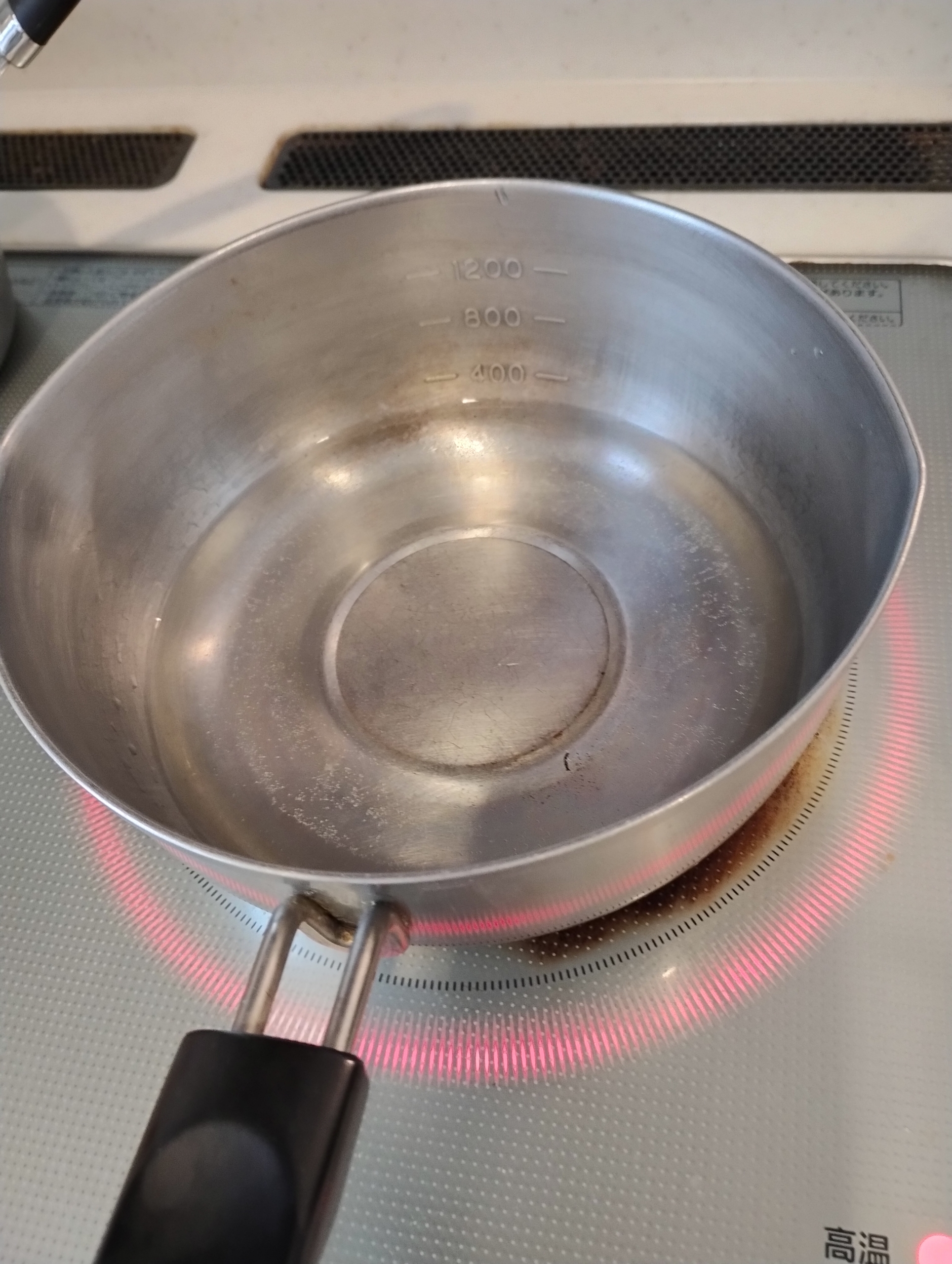 次は通常ボタン。中火と同じくらいの5で沸かしました。