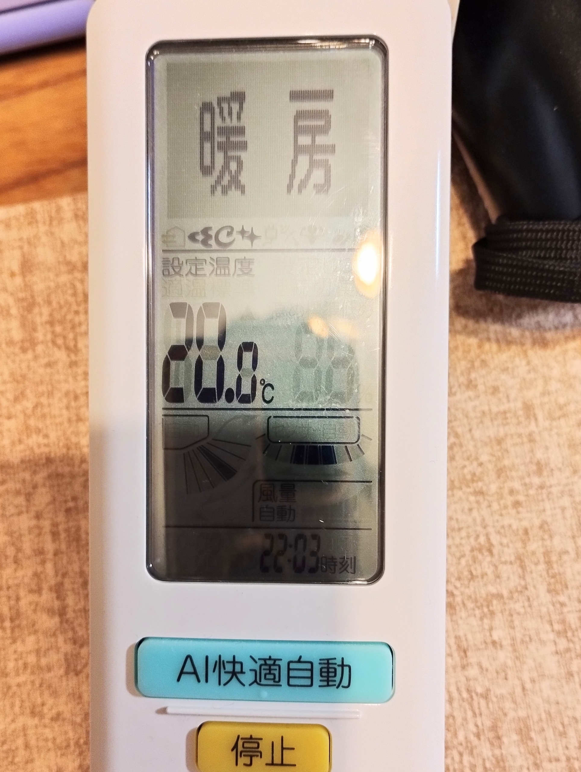 エアコンの設定温度20℃でも部屋は20℃以上をキープしています。