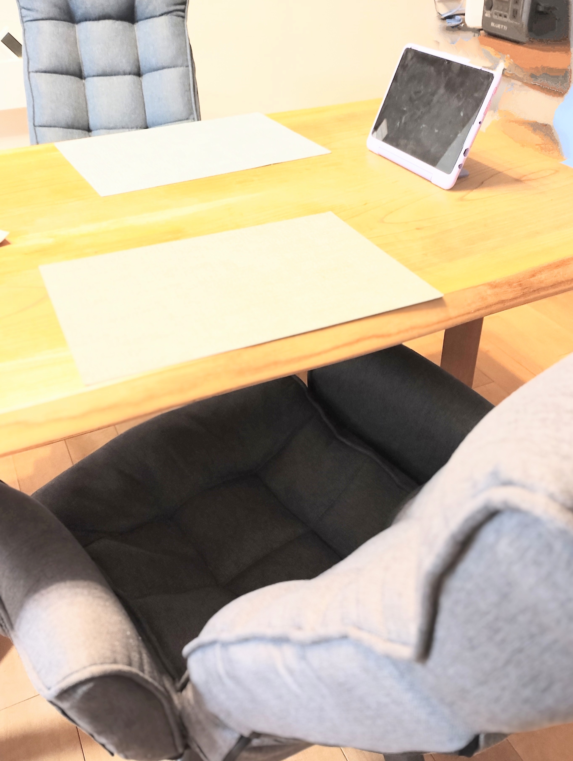 ソファチェアに座り、ダイニングテーブルで家族でオセロをしたり、タブレットで映画を見たり。