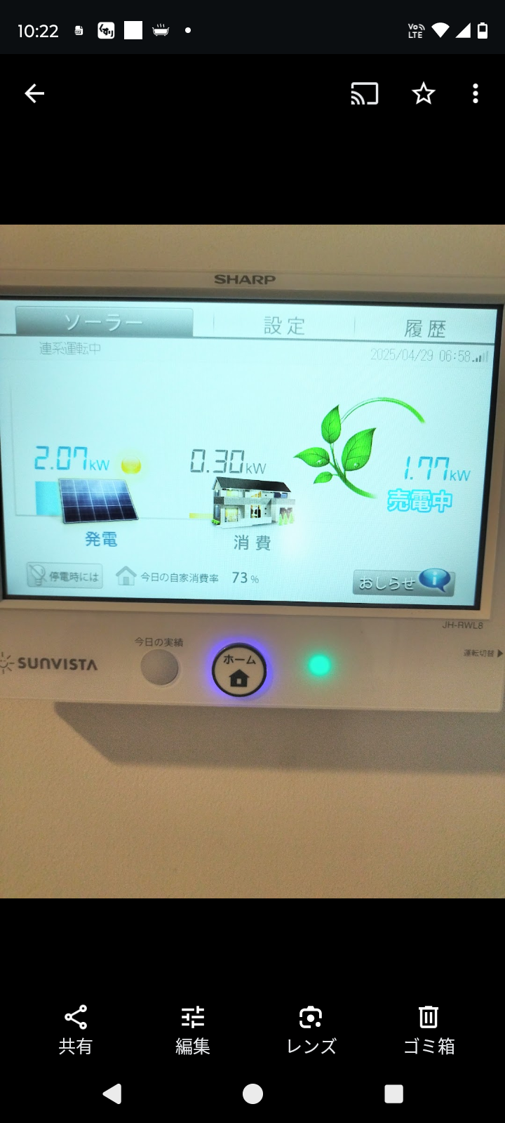 晴れている日の昼間に沸き上げをしている時は、売電もできているのですが、早い時間帯になると、なかなか難しいようです。