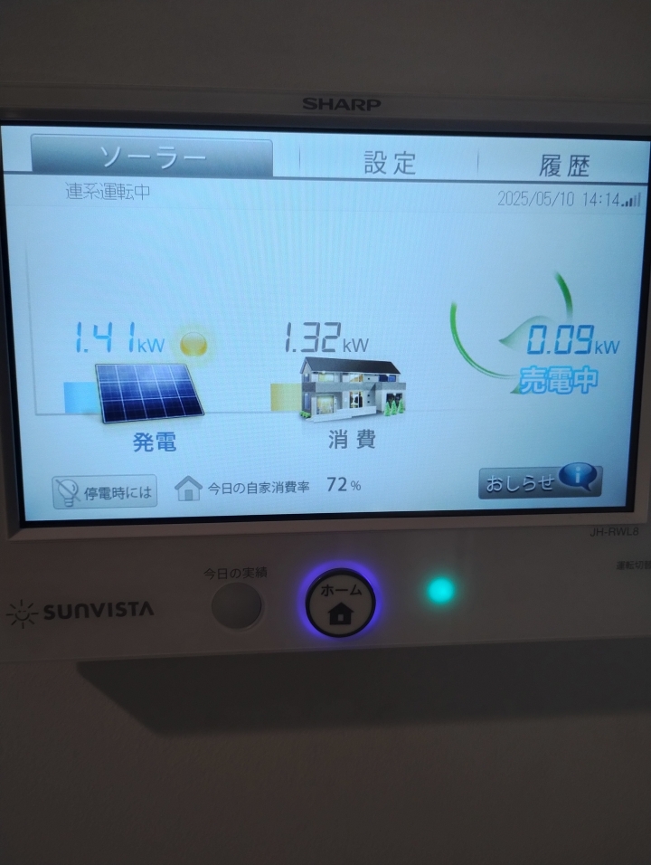 14時過ぎくらいになり、多少ですが売電できました。