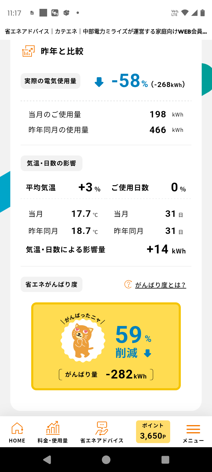 雨の日の電力アップは仕方ないと諦めます。