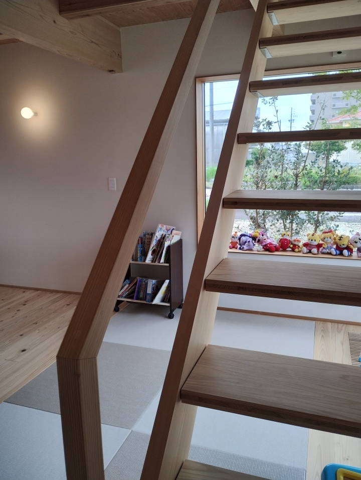 階段を上がると大きな窓があって、素敵な景色が見えます。