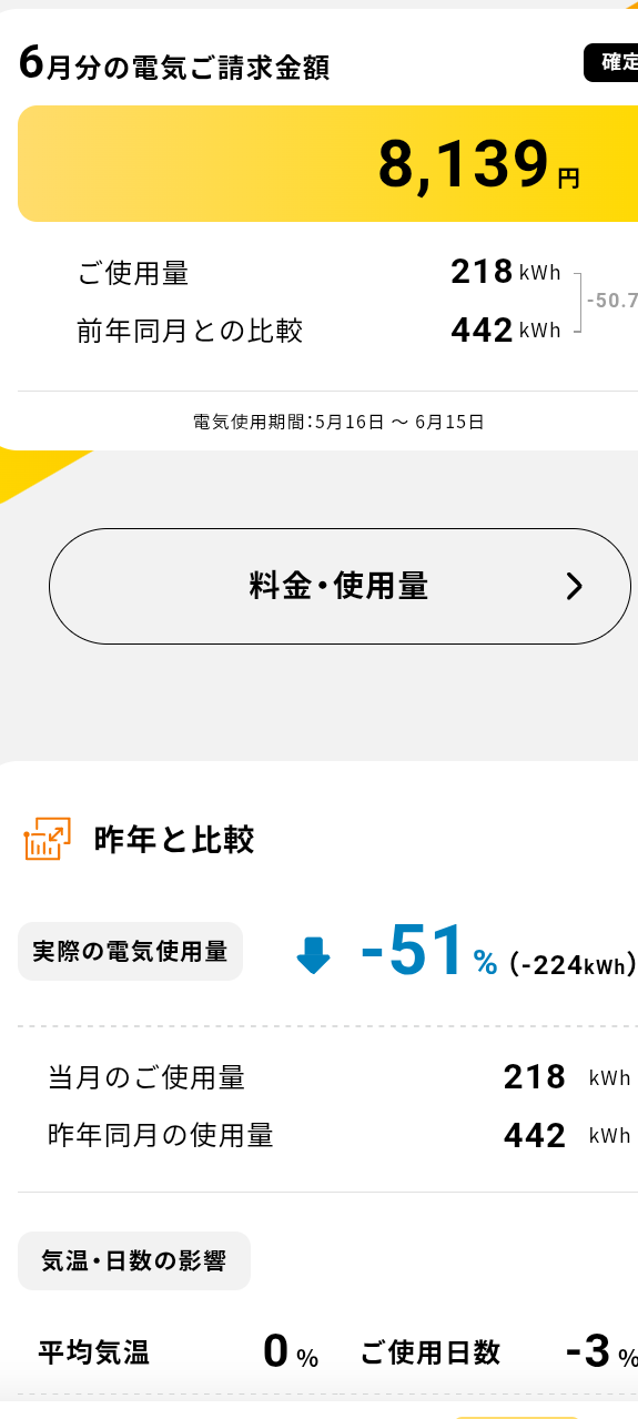 先月に比べると、少し上がりましたが、エアコンの使用を考えると、想定内だったので、よしとします^^