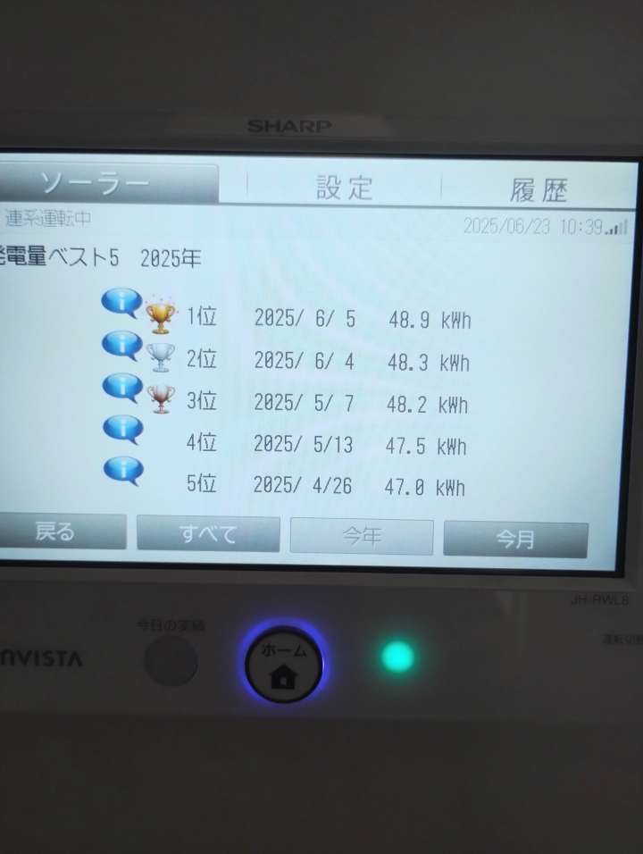 今年に入ってからの太陽光の発電量のベスト5です^^