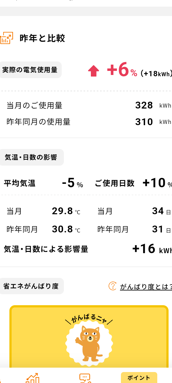 今月は前年の電気代より高くなってしまいました。