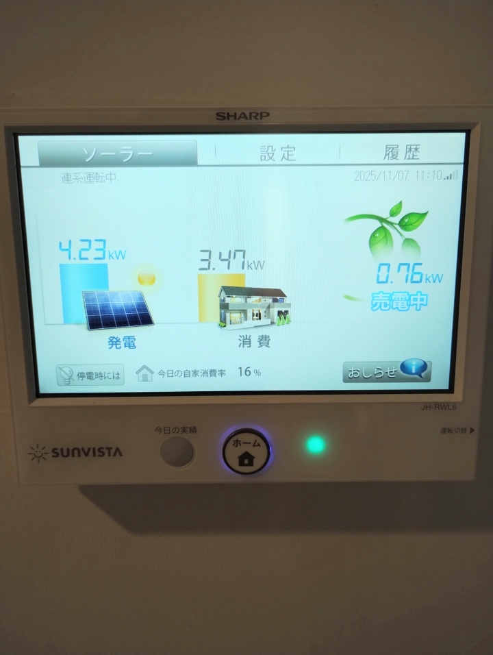 まだ0、76kW売電できています。