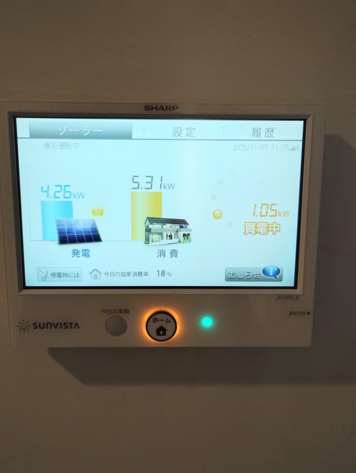 一気に上がって発電量を超えてしまいました。