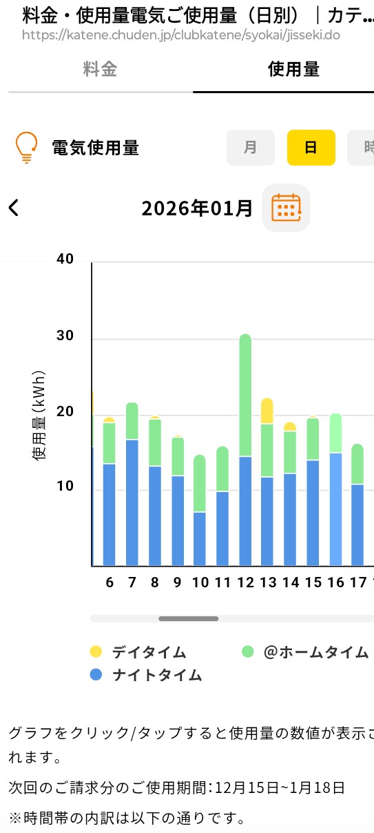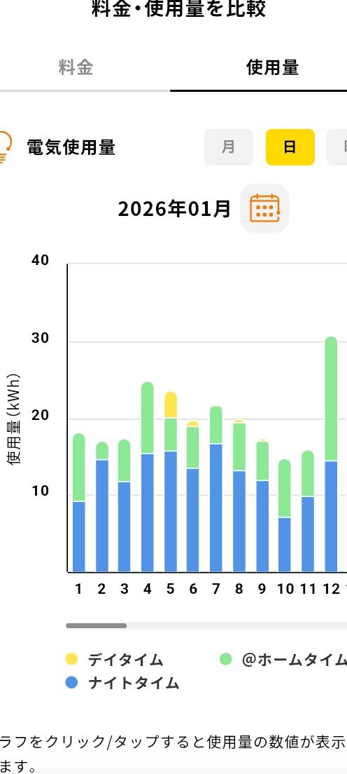 今月は寒い日が多く、冬休みもあったので、湯船を入れた回数が多く、使用量が気になり見てみました。