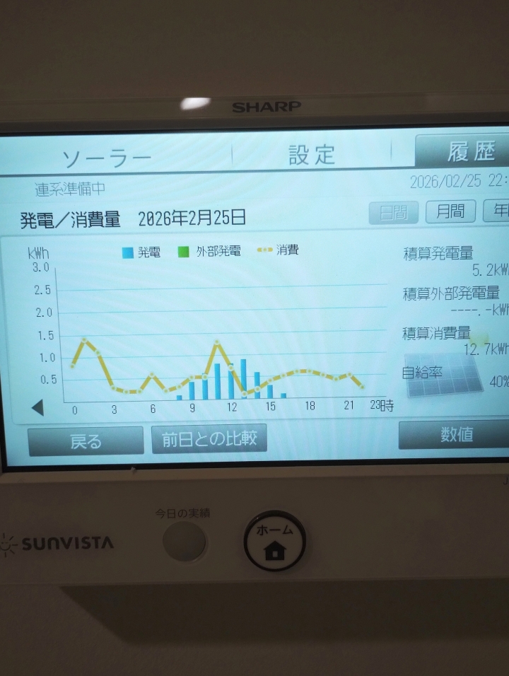 雪の日と違って多少は発電していますが、ごくわずかです。
