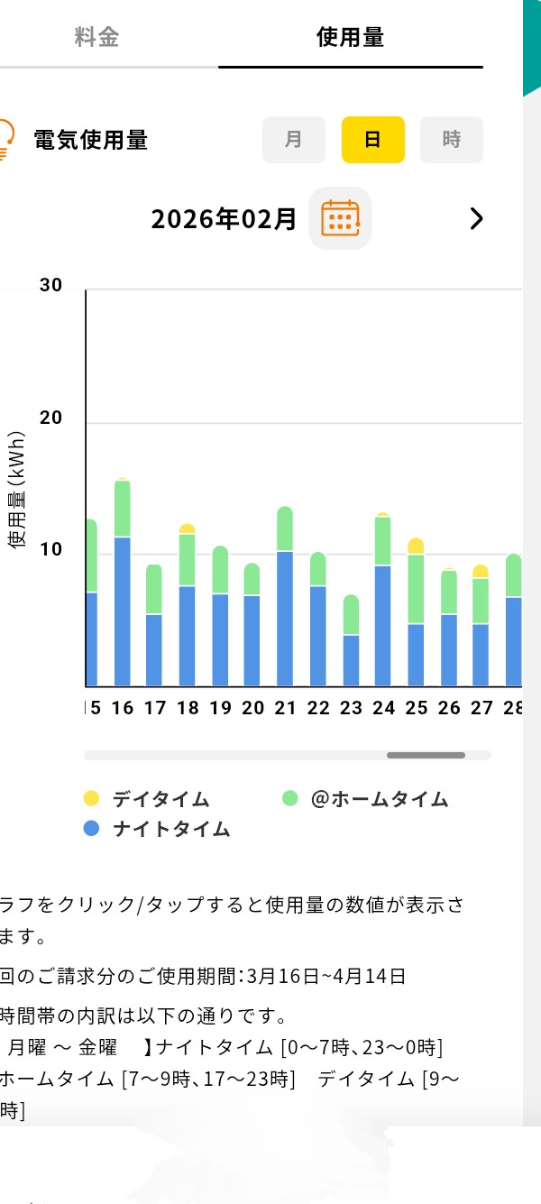 使用電力が10kWにならない日もあります。