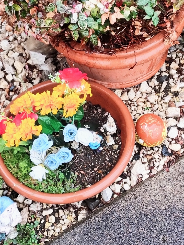 玄関前の造花その後です。