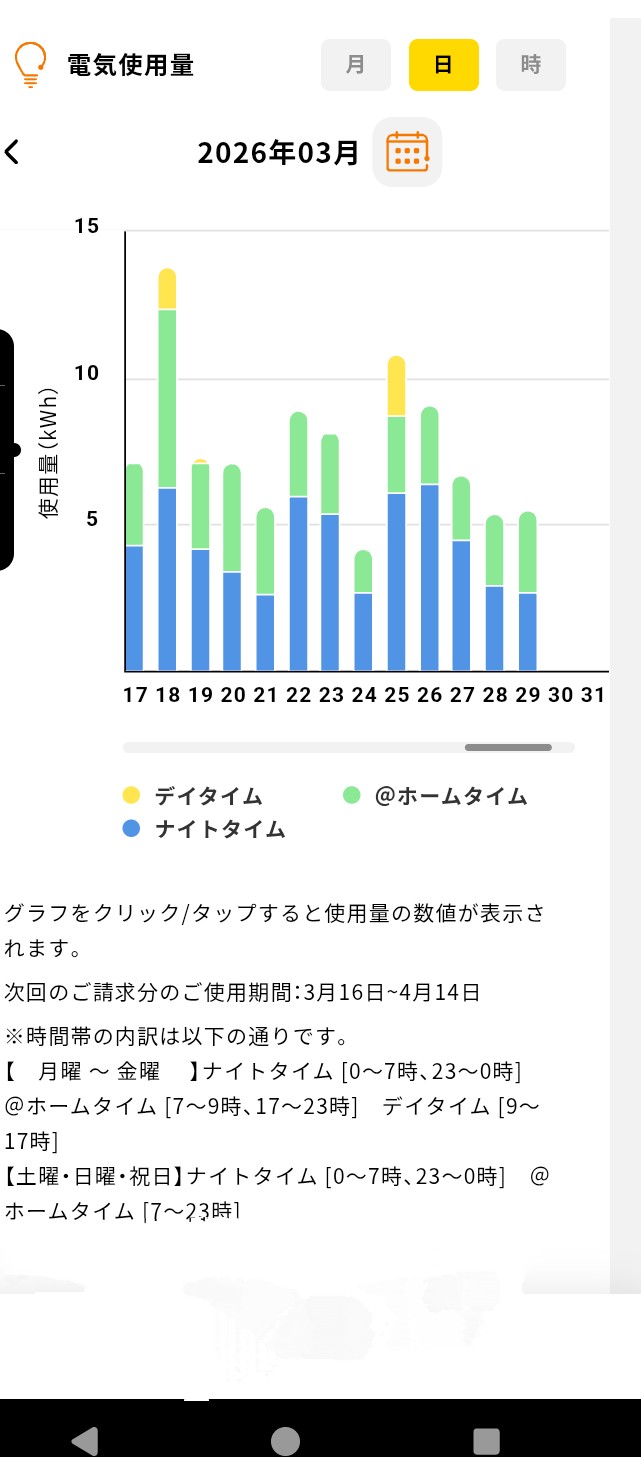 毎日がこんな使用電力なら電気代もだいぶ安いんだろうな。