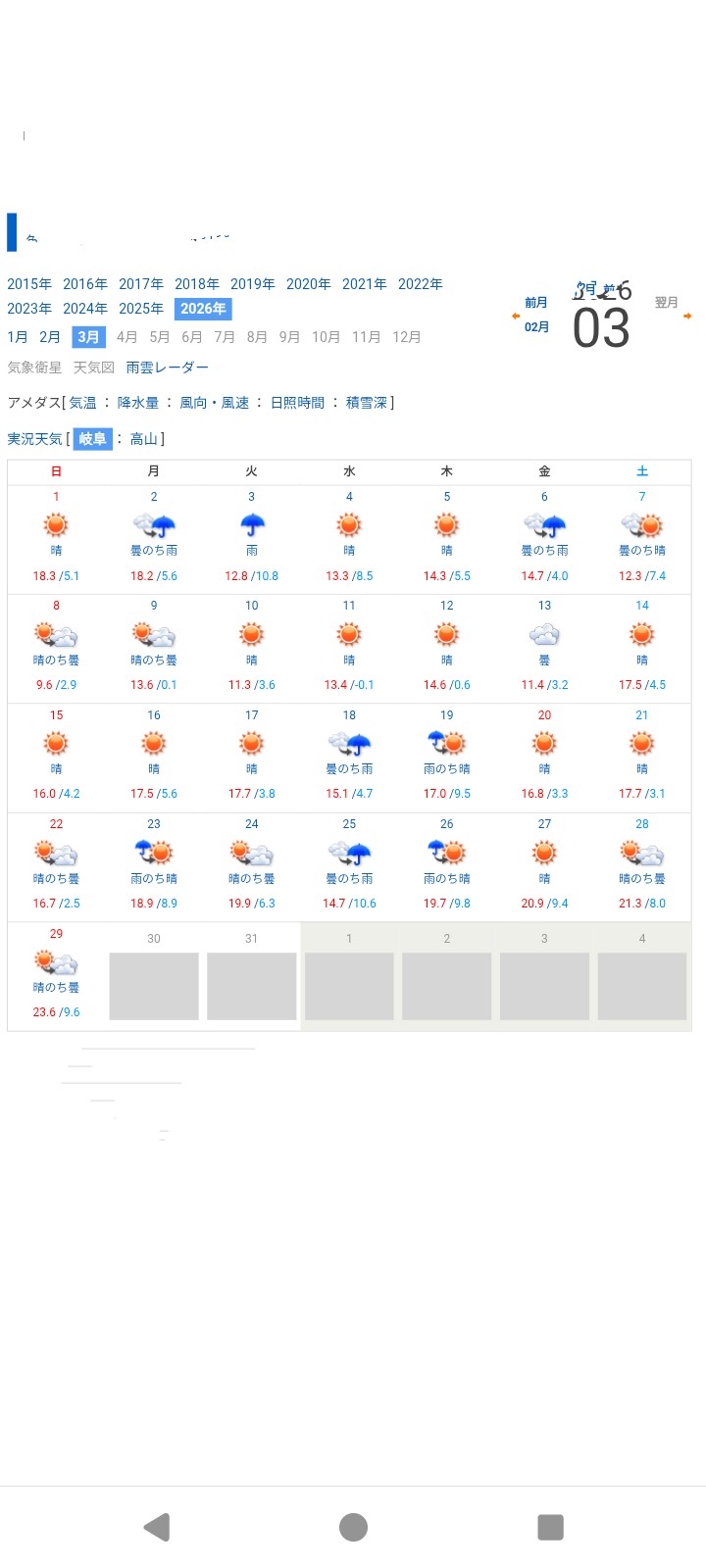 18日は多くなっていたので、天気も調べてみました。