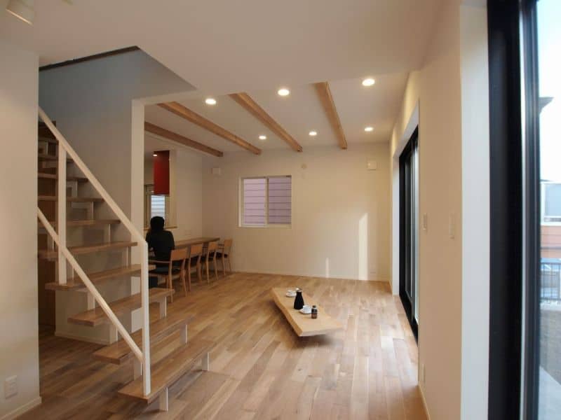 お部屋の天井が高く無垢の木の梁がさらに、そうさせます。