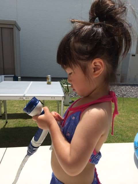 庭を愛してやまないパパちゃんは真夏も頑張って草むしりをしーの、タイルデッキを高圧洗浄しーの‥‥
