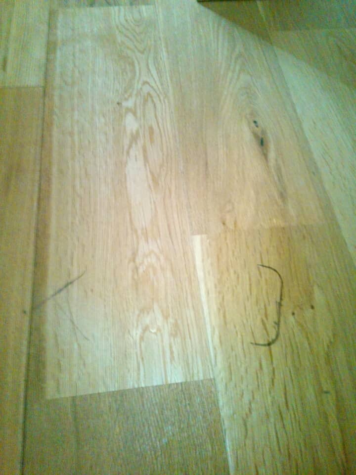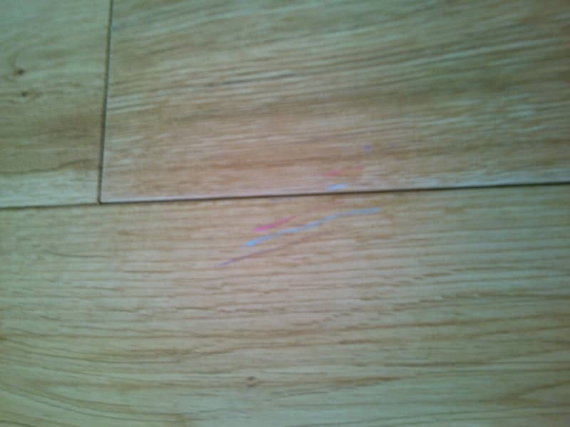 これは、缶の錆び。当然、落ちなかったですちなみに、場所はキッチン後ろの造作棚の床です。ここは、無垢床じゃない方が良かったかもです。