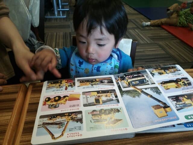 友達のベビーはボールで遊んだり、自動車の本を読んだり
