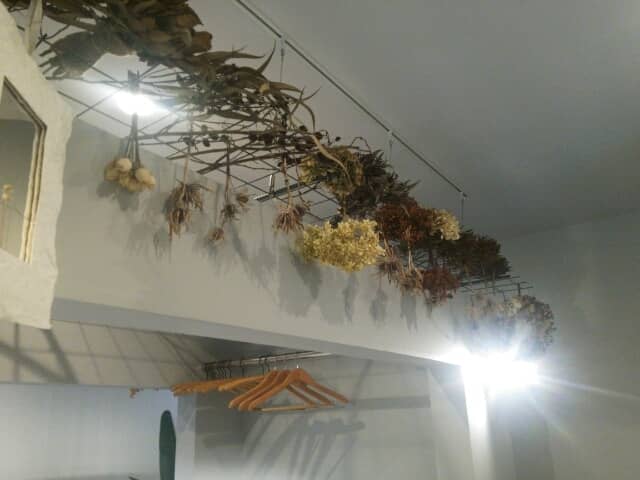 扉を開けるとドライフラワーがお出迎えしてくれます
