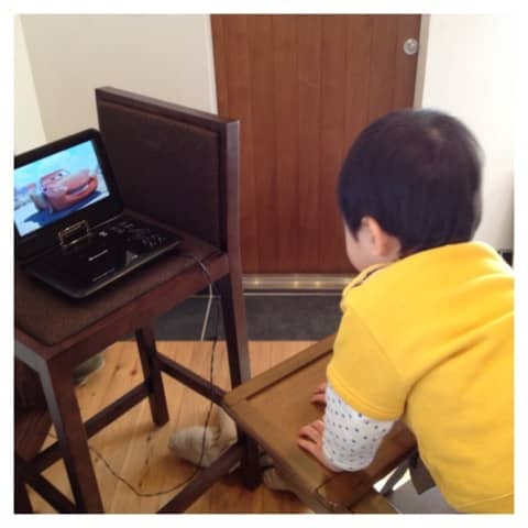 そしてそんな私たちをよそに、カーズのDVDに夢中のおチビさん…
