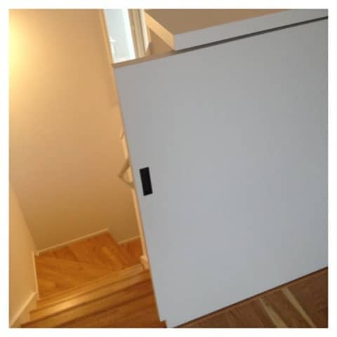 ここは階段に半分の高さの引き戸がついていて、小さい子がいても危なくないし、これを閉めることで空間が仕切られて落ち着くし、夏は冷気も逃げないし。本当によく考えられてるなぁと感心しました(*^^*)