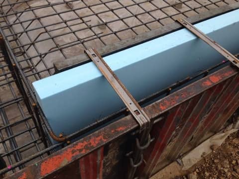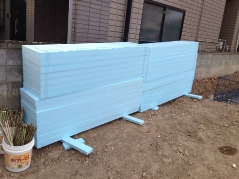 こんな感じで基礎の内側に断熱材が入ります。コンクリートを流し込む前に断熱材を貼ることでシロアリが大好きな『僅かな隙間』を作りません!