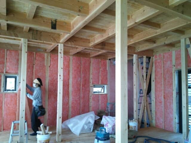日曜日なのに休まずに断熱材を入れてくれてた大工さん