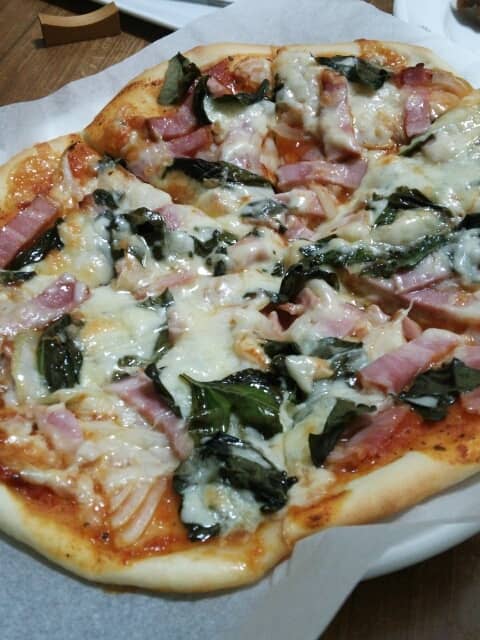 夜は家でピザを焼いてみました