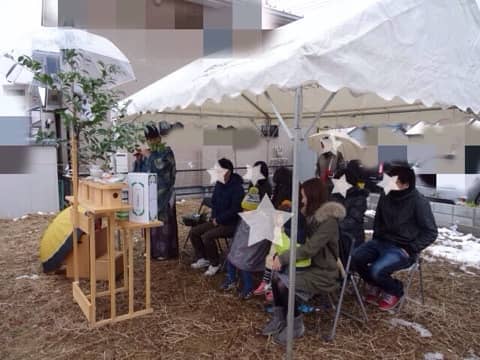 説明を聞きながら、四隅にお酒、お米をまいていきます。