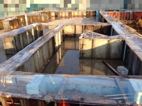 このように、コンクリートと断熱材がすきまなく埋められています。