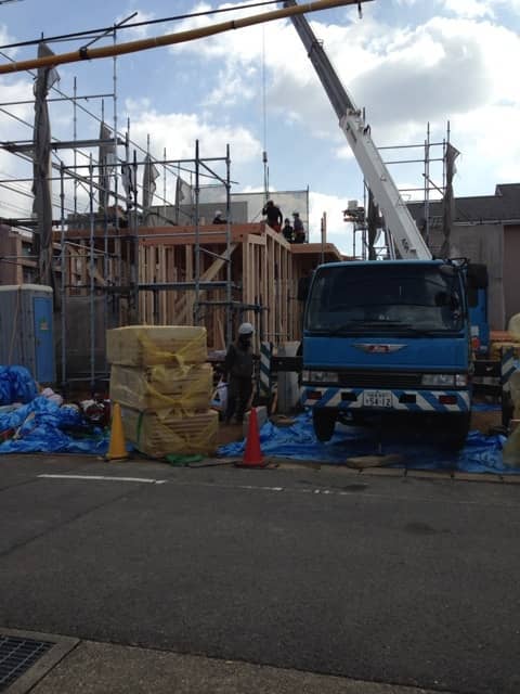 今日は、大工さん10名、クレーンオペレーターさん1名で作業していただきました。