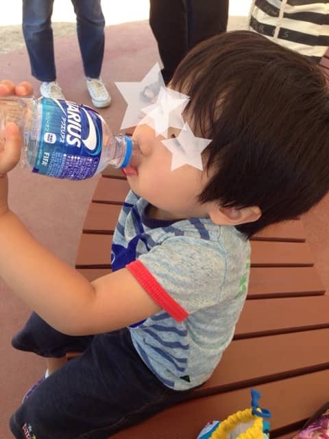 そのあとはアスレチックはほとんど遊ばず、水分補給専門。