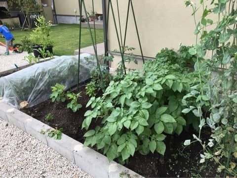 その隣に植え付けた、ミニトマト、トウモロコシ、枝豆も元気。