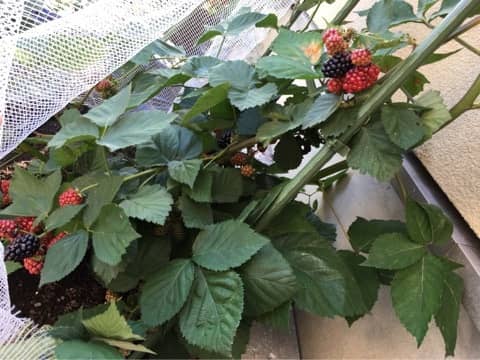 ブラックベリー、3年目の今年も、たくさん実をつけています。