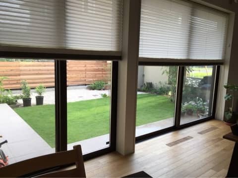 ウッドフェンスのおかげで、リビングのプリーツスクリーンをいつもより上げるようになりました。