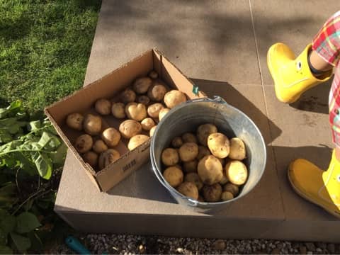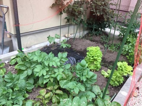投稿日:2017.06.12 最終更新日:2017.06.12 岐阜市 Y様_02 6月、畑 今の畑。 奥からブラックベリー、ミニトマト モロヘイヤ、シソ、パセリ オクラ、リーフレタス じゃがいも 雨が上がって3日たったので、 芋ほりをしました。 男爵とキタアカリ 去年の反省をいかして、 植え付け時の堆肥をしっかりあげたので、 去年より大粒な気がする。 ブラックベリーも熟し待ち。 ミニトマトももうすぐ食べられそうです。 この記事をシェアする