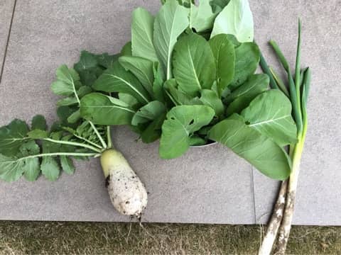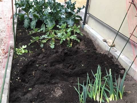 (農協で買った、土&根っこつきのもの。土に挿しておくと、長持ちするらしい)