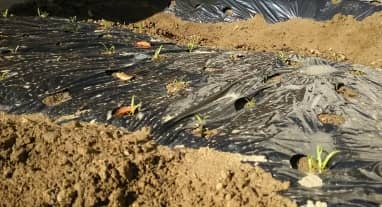 早速、旦那はせっせと畦やマルチを敷いて「ホウレンソウ」と「エンドウ豆」を播きました!