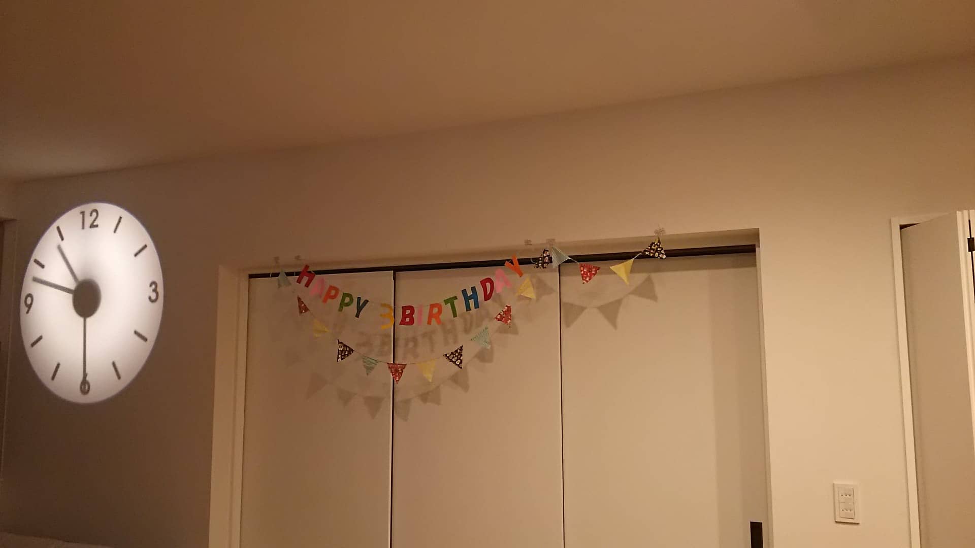 だったのでガーランドを作り、初めてのお家で楽しくパーティー
