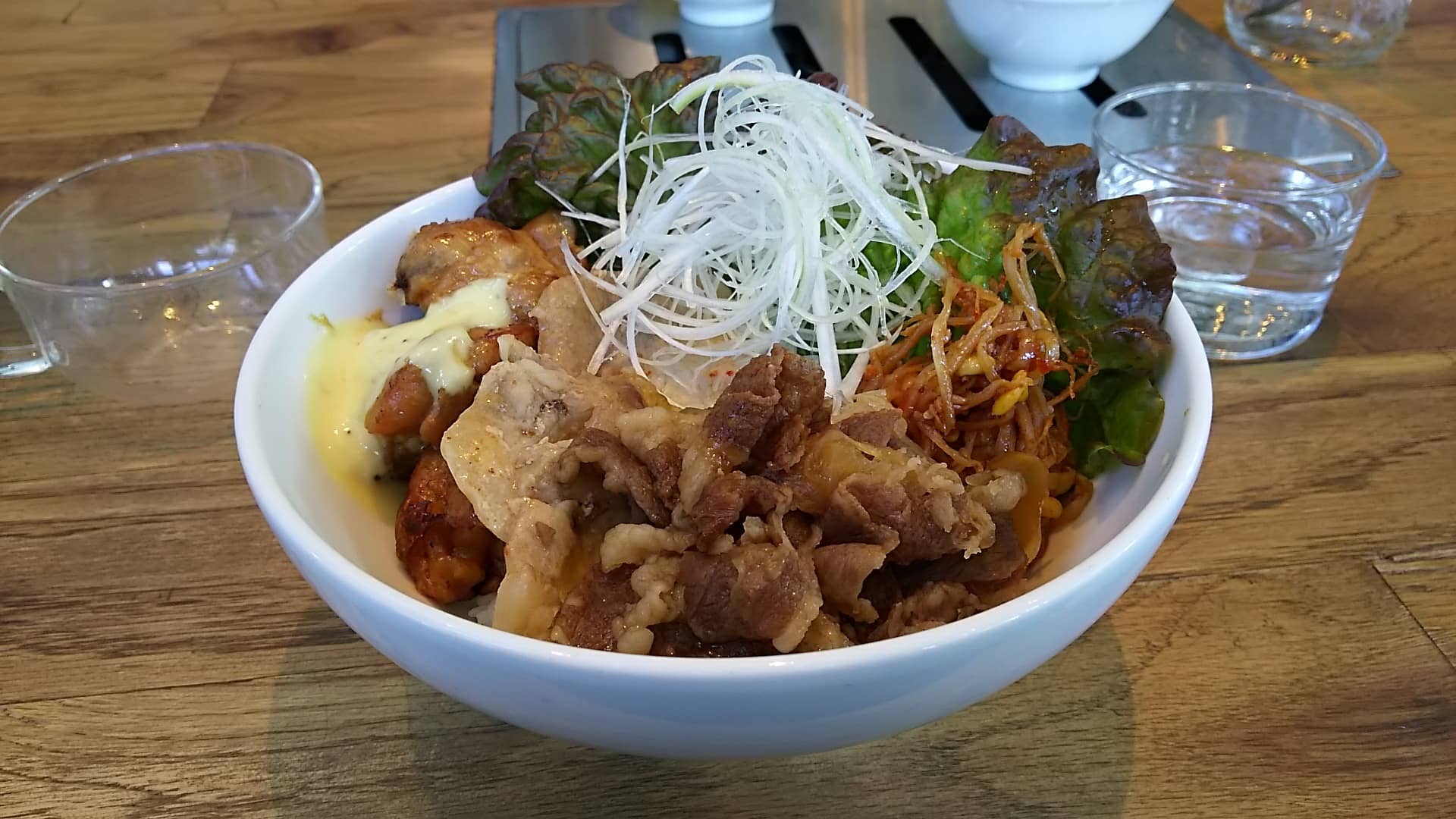 スタミナ丼は牛・豚・鶏の三種の肉が使われており、満足する一品です!