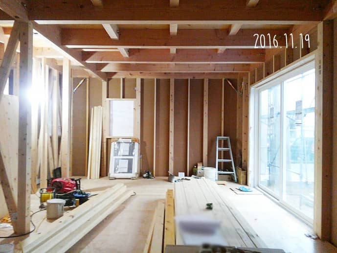 リビングとキッチンの大きな掃き出し窓が入っていました。