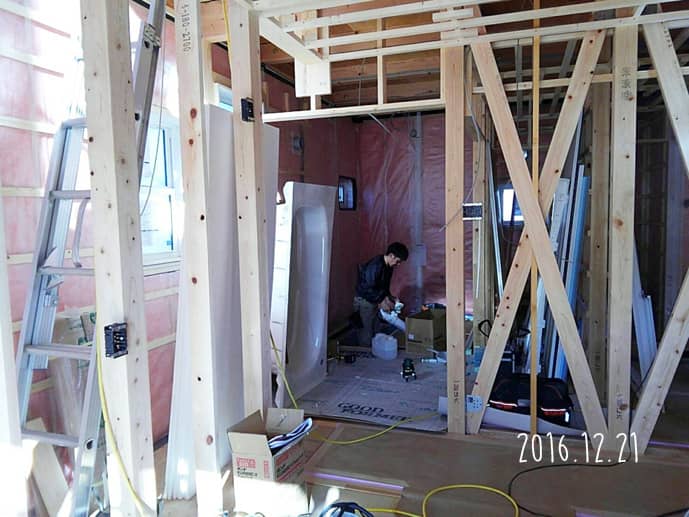2階では大工さんが、ガガガガガッと音を立てていて。