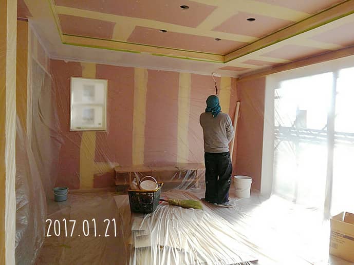 そんな我が家は、本日天井のダイアトーマス吹付。