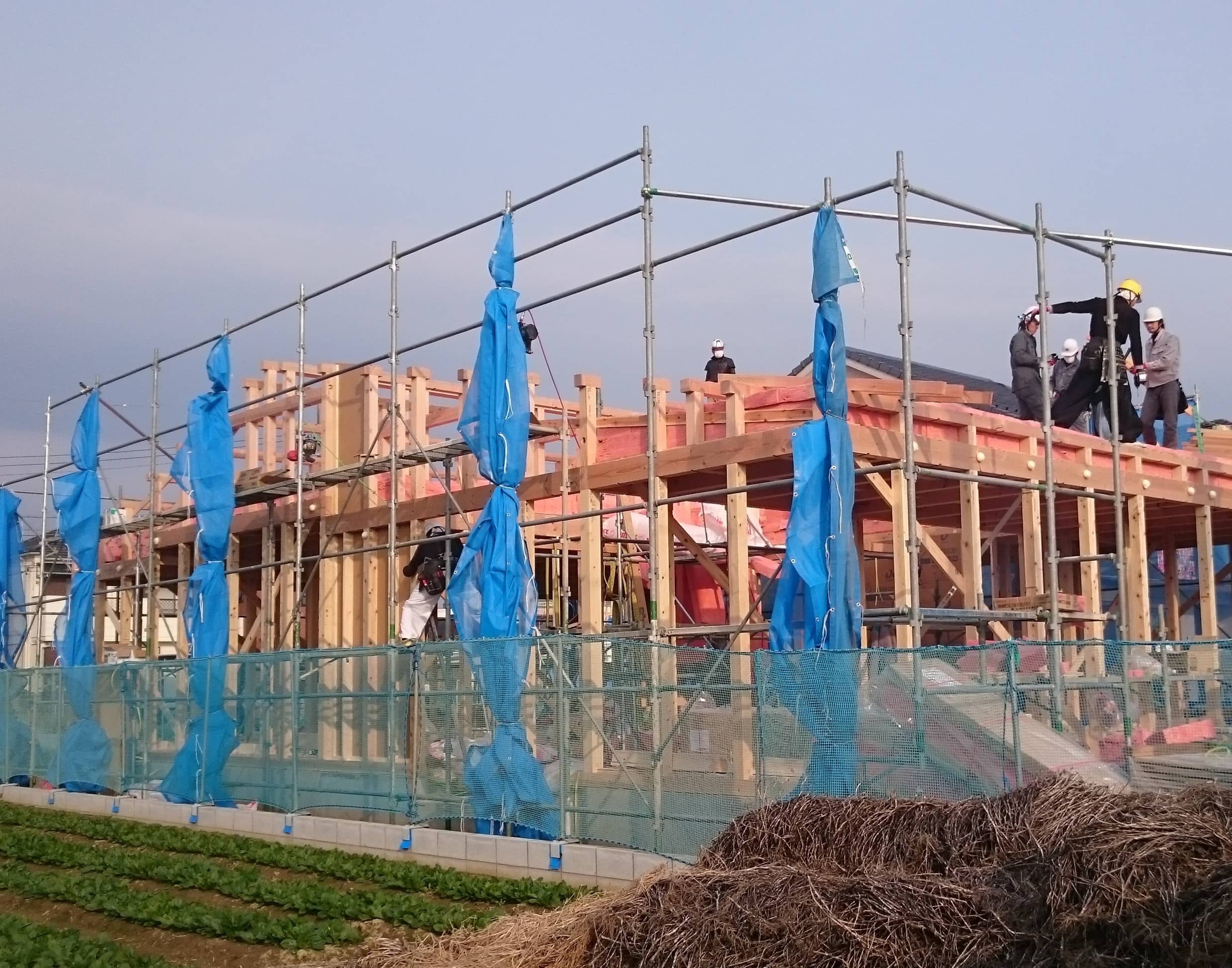 ちょうど自分が帰ったころ雨が降り出してきたので、断熱材とか濡れてないかと心配してたんですが、大工さんのブログを見たら、間一髪ブルーシートを敷いて大丈夫だったとのことで安心しました。![]()