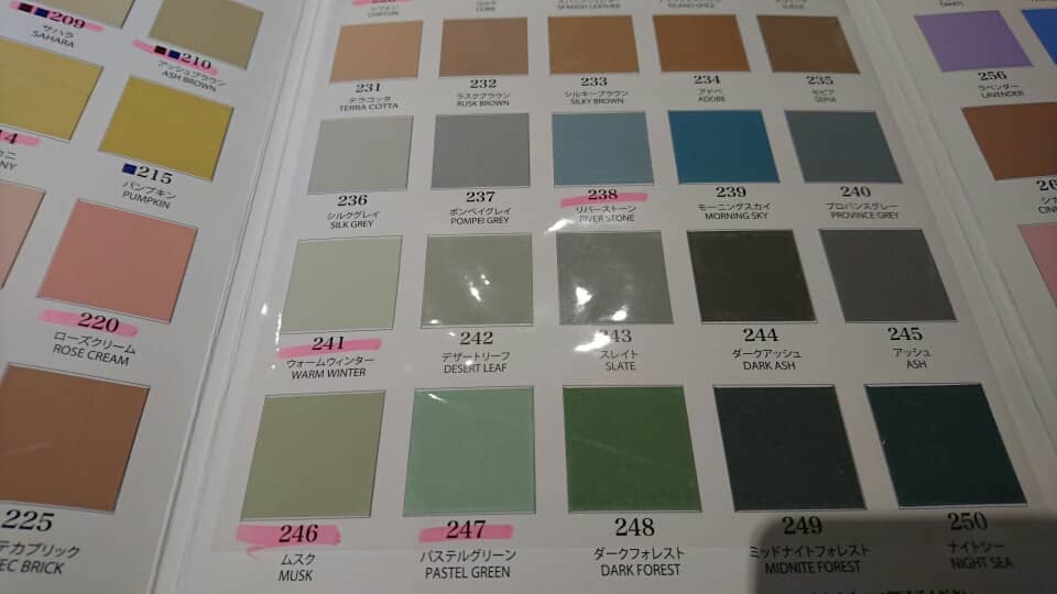 と告白されたため、エムズさんから借りた色見本とインターネットの施工事例をチェックしながら、北欧に向かいつつ、北欧になりすぎないようにしたい❗いわゆる、『ビターな北欧』という方向性が決まり、壁の色を決めました。
