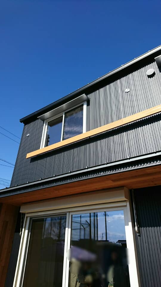 外観は、ガルバの黒壁で遠くから見てもかっこいい