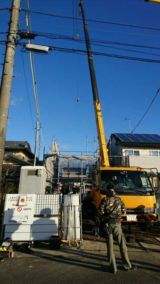 スタート。妻が朝に向かったときは、すでにクレーン車が働いてました