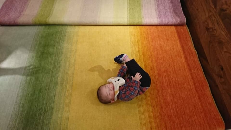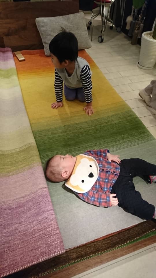 我が家は、3歳と0歳の男の子がいるということで、絨毯は、洗えるものがよいなーっと思ってました。